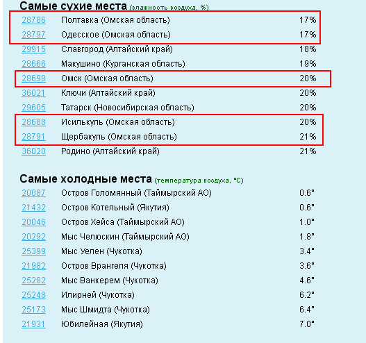 Днем по первой картинке, самые теплые места, первые 4 места были у Омской области.