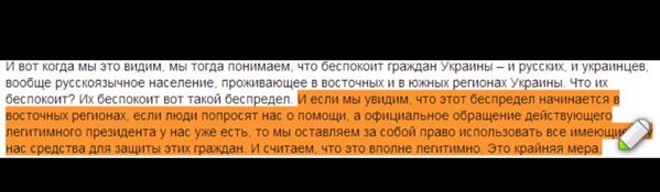 Короче, ещё пара вот таких эсэсмански-мясниковых дней, и я уже с чистой совестью назову г-на Пуссена "пенис-лом"(с), предательски не держащим своего же не столь давнего обещания Чем мне нравится Путин, что он не "буйно-идейный", готовый без головы бросить страну в никуда. Путин понимает, что Крым уже даст удар по России, отбросив её на лет пять экономически и лет на двадцать в плане контактов с западом. Путин также понимает, что развязывание открытой войны с Украиной не выгодно ни с какой точки зрения. Он мыслит трезво, за что и уважаю. --- За что умирают люди в Славянске? За то, платить ли налоги Киеву, или платить Москве. Спроси их, стоит ли перенаправление налогов их жизней? Посмотри на свои же картинки убитых и спроси себя: нормально ли то, что эти люди умерли за то, чтобы налоги шли другому центру? Потому что других причин умирать нет. Русский язык никто не запрещает, вся Украина говорит на нём. За что умирать?